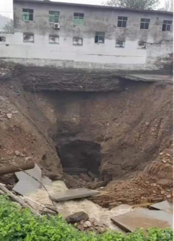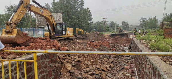自7月17日以來,河南遭受極端強降雨天氣,分公司駐地登封市白坪鄉(xiāng)遭遇歷史有記錄以來降水峰值。白坪鄉(xiāng)前期存在大量煤礦,地下存在采空區(qū),連續(xù)強降雨天氣造成白坪小區(qū)北側(cè)道路塌陷,目測塌陷方量1600m3,造成河道改道,洪水沿塌陷區(qū)倒灌入地下。7月21日上午10時許白坪分公司接到白坪鄉(xiāng)政府險情通知,立即組織人員及設(shè)備趕赴現(xiàn)場進行搶險救援工作,調(diào)派挖機兩臺、汽車兩輛,其中一臺挖機去塌陷區(qū)進行險情處理,另一輛挖機配合汽車在礦山裝料運輸至塌陷區(qū)。目前位于塌陷區(qū)處理險情的挖掘機24小時不間斷作業(yè),力爭以最快速度排除險情,不計代價配合當?shù)卣龊梅姥淳葹墓ぷ?,做到央企在關(guān)鍵時刻的責任擔當。  塌陷區(qū)  挖掘機到現(xiàn)場進行初步作業(yè)  險情處理工作初見成效 |