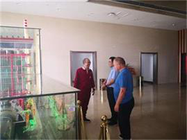 在礦山臨建生活區(qū)檢查過程中,郭總與業(yè)主山西國金電力有限公司董事長、總經(jīng)理頡鈺進行友好的暢談,隨后郭總受頡鈺董事長邀請來到山西國金電力有限公司總部大樓,興致勃勃的參觀了正在使用世界首臺350MW超臨界循環(huán)流發(fā)電機組模型。