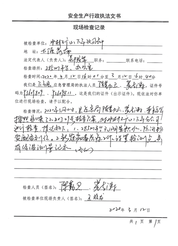 2020312午,根據(jù)萬(wàn)年縣疫期防控需要,萬(wàn)年縣應(yīng)急管理局領(lǐng)導(dǎo)中材礦山萬(wàn)年分公司施工現(xiàn)場(chǎng)及辦公室進(jìn)行檢查,主要檢查了分公司疫情防控相關(guān)措施及汛期防護(hù)設(shè)施物資。