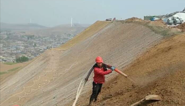 2018年12月20日,由兗州中材平陰分公司承擔施工任務的平陰山水道路及邊坡治理工程在分公司的精心組織下順利開工了。所治理的排渣場工程處于平陰山水礦區(qū)西側(cè),由于基建期修建運礦道路,爆破后及后期排渣在原山坡地形上形成高斷面、坡度較大的地形,存在滑坡的安全隱患,加之一條縣道從山坡下穿過,嚴重影響平陰山水礦山形象建設,因此甲方下定決心進行治理。 兗州中材平陰分公司接收此項施工任務后,對該項工程非常重視,項目經(jīng)理劉占中組織精干技術力量及設備在取得第一手詳細測量資料的基礎上,多次召開分公司會議討論施工方案和方法,并與業(yè)主及設計單位多次溝通,敲定最終施工方案。 工程開工以后,分公司組織兩臺卡特336挖機、破碎錘按照施工設計方案對排渣場進行分臺階治理。分臺階治理過程中,為防止坡面上的大塊及其他雜物滾進邊坡下方的農(nóng)田,采用鋼絲繩捆綁,用挖掘機拖拽就地挖深坑掩埋的辦法進行處理,最大程度的減少了對下方農(nóng)田的干擾和破壞。經(jīng)過四十天的緊張施工,邊坡分臺階治理終于完工。 經(jīng)過業(yè)主、監(jiān)理及設計單位共同初步驗收,達到設計要求后,進行臺階及坡面覆土工作。按照設計要求,覆土厚度大于15厘米。掛網(wǎng)采用規(guī)格為5cm*5cm網(wǎng)格的鋼絲網(wǎng)進行全坡面覆蓋,加長錨桿固定的方式進行。在專業(yè)人員的努力下,經(jīng)過二十天的奮戰(zhàn),17000平方米的掛網(wǎng)工作順利完工。  2019年4月5日當天噴播工作全面展開。選用的噴植植物由紫翠槐、胡枝子、荊條、多花木蘭、鹽膚木、刺槐等十幾種灌木及狗尾草、沙棘、苜蓿等十幾種草本植物組成,混合壤土進行噴植。 噴植混合土  噴植混合土 噴植后用纖維毯進行覆蓋,結(jié)合噴淋系統(tǒng),既可保溫、保濕,又可保護幼苗生長。  噴植后覆蓋纖維毯  噴淋澆灌 讓人驚奇和欣慰的是,在進行噴植過程中,之前的幼苗已經(jīng)偷偷的冒出了頭,形成一片綠毯。根據(jù)設計的綠化效果,植被系統(tǒng)層次分明、生長季節(jié)持續(xù)有爭奇斗艷的開花物種不斷綻放。到2019年5月7日,17000平方米的噴植工作已全部完成,全面進入維護保養(yǎng)階段。 噴播綠化工作對我們礦山工程施工來說是一項全新而又陌生的工作,每一道施工工序和流程,分公司安排專人收集施工數(shù)據(jù)、建立施工檔案,在施工全過程中積累了一定的經(jīng)驗。  綠化前排渣場  排渣場治理后 當前國家全面推進綠色礦山建設,我們將借助這次綠色礦山建設的東風,全面將把綠色礦山建設深入貫徹下去,同時我們堅信,當前播種的是綠色和希望,將來我們一定會擁抱一個美好的春天! 兗州中材平陰分公司(楊廷明) |
