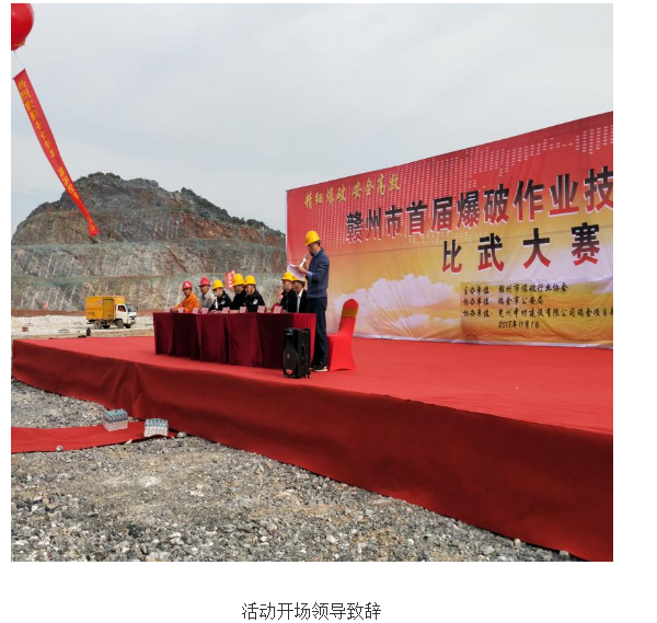 為了推廣‘精細爆破,安全高效’的先進爆破經(jīng)驗,提升爆破作業(yè)人員的業(yè)務(wù)技能,培養(yǎng)高素質(zhì)的爆破作業(yè)隊伍,應(yīng)贛州市公安局要求,2018年11月01日兗州中材建設(shè)有限公司瑞金項目部協(xié)同贛州市爆破行業(yè)協(xié)會在瑞金萬年青貓子寨石灰石礦山舉辦了贛州市首屆爆破作業(yè)技能與安全比武大賽活動。 本次“贛州市首屆爆破作業(yè)技能與安全比武大賽”是贛州市舉辦的第一屆爆破大比武活動,共有60余人參加比賽,另外還有贛州區(qū)域公安干警及各涉爆單位人員代表120余人到現(xiàn)場觀摩。賽前,項目部副經(jīng)理蘭武林、經(jīng)理助理閆循慧向全體參賽及觀摩人員匯報了我公司在貓子寨石灰石礦山生產(chǎn)施工情況及礦山爆破施工狀況,組織大家觀摩施工現(xiàn)場?;顒痈傎惙掷碚摽己撕蛯嵺`操作考核兩部分?;顒蝇F(xiàn)場參賽人員積極認真,觀摩人員井然有序,比賽過程嚴肅緊張。