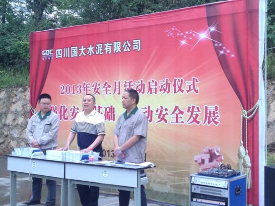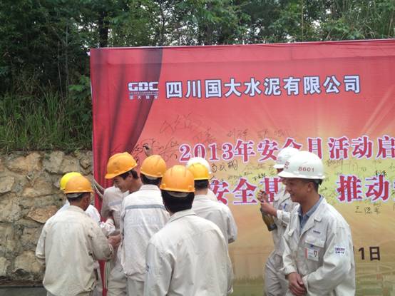 四川國大水泥舉行安全月啟動儀式 6月1日,四川國大水泥有限公司舉行了以“強化安全基礎(chǔ),推動安全發(fā)展”為主題的安全月啟動儀式。江油市含增鎮(zhèn)安辦主任唐開文到會并講話。會議由國大副總鐘義主持,兗州中材國大礦山的全體員工也應(yīng)邀參加。 唐開文在講話中回顧了過去幾年國大水泥對安全生產(chǎn)作出的巨大貢獻,他還表示,礦山現(xiàn)場的安全工作已成為江油市乃至綿陽市的一個安全示范亮點,這與兗州中材的積極努力也是密不可分。國大安全經(jīng)理余德權(quán)在對安全生產(chǎn)諸方面作出重要指示后,也針對礦山安全施工提出更高的要求,希望兗州中材能將良好的安全工作習(xí)慣保持下去。會上,給全體員工發(fā)放了安全手冊。每位員工在安全月宣傳墻上簽名,這將會議推上了一個高潮。會后,員工們均表示:通過此次啟動儀式,使得安全工作更加深入人心。對于安全生產(chǎn)的重視,時刻不敢松懈! 杜國賓