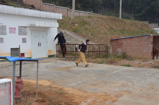 兗州中材江油國大項(xiàng)目部成功舉行 炸藥庫應(yīng)急防暴演練 寧靜的午后,兗州中材江油國大項(xiàng)目部炸藥庫值班室突然警鈴大作,監(jiān)視設(shè)備顯示一名男子手持鐵錘闖入炸藥庫。在這危急時(shí)刻,炸藥庫庫管、安保員立即向項(xiàng)目部應(yīng)急救援領(lǐng)導(dǎo)小組報(bào)警,同時(shí)撥打110報(bào)警電話,并進(jìn)入炸藥庫實(shí)施圍堵。 接到警報(bào),項(xiàng)目部領(lǐng)導(dǎo)立即啟動炸藥庫應(yīng)急預(yù)案,根據(jù)“敵情”,應(yīng)急救援領(lǐng)導(dǎo)小組立即集結(jié)“護(hù)衛(wèi)隊(duì)”3名成員乘車直奔炸藥庫。護(hù)衛(wèi)隊(duì)趕至炸藥庫時(shí),離報(bào)警時(shí)間僅過去三分鐘。此時(shí)“不法分子”對堅(jiān)固的庫房雙層防盜門束手無策,庫房凄厲的警報(bào)聲也給“不法分子”帶來沉重的心理壓力,騎虎難下的“不法分子”拔出刀具,威脅庫管員立即打開雷管庫。護(hù)衛(wèi)隊(duì)員臨危不懼成功的對“不法分子”實(shí)施了抓捕。最終,被制服的“不法分子”被移交給隨后趕到的公安局民警,一場突發(fā)事件被迅速平息。