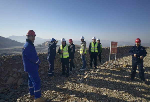 分公司人員陪同專(zhuān)家組到礦山進(jìn)行現(xiàn)場(chǎng)審查,為專(zhuān)家介紹礦山施工情況。