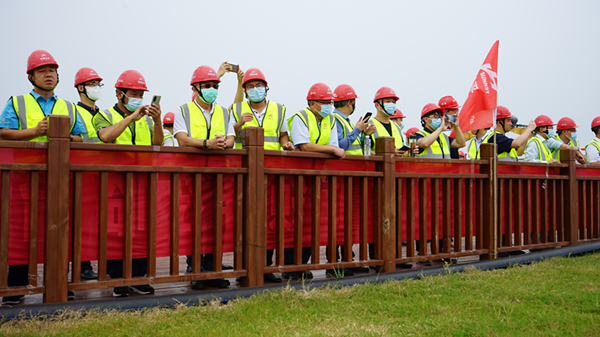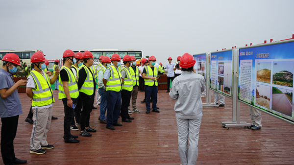 2021年9月18日,由中國(guó)水泥協(xié)會(huì)主辦,中材礦山建設(shè)有限公司、山水集團(tuán)協(xié)辦的第十五屆水泥礦山年會(huì)暨中國(guó)水泥協(xié)會(huì)礦山專業(yè)委員會(huì)第五次代表大會(huì)參會(huì)代表蒞臨兗州中材有限公司平陰分公司青龍山礦區(qū)參觀。中材礦山胡總、兗州中材劉總、平陰山水總經(jīng)理丁宗新、黨委書記侯福存及相關(guān)領(lǐng)導(dǎo)接待了與會(huì)代表。  參觀團(tuán)先后參觀了平陰山水公司智能化控制室、數(shù)字化礦山控制室,并到礦山現(xiàn)場(chǎng)進(jìn)行實(shí)地參觀。  我方代表結(jié)合現(xiàn)場(chǎng)對(duì)我公司的‘六個(gè)標(biāo)準(zhǔn)化’進(jìn)行了細(xì)致的講解,參觀團(tuán)詳細(xì)了解并觀看了各平臺(tái)的開(kāi)采情況、路王漿道路運(yùn)行情況、噴淋抑塵系統(tǒng)的抑塵效果、預(yù)裂邊坡爆破后效果以及GPS智能卡車調(diào)度系統(tǒng)。  通過(guò)實(shí)地參觀和交流,參會(huì)代表對(duì)平陰公司數(shù)字化礦山+綠色礦山有了更直觀的了解,對(duì)數(shù)字化礦山開(kāi)采的先進(jìn)性、可靠性以及對(duì)綠色礦山的建設(shè)給予了肯定。