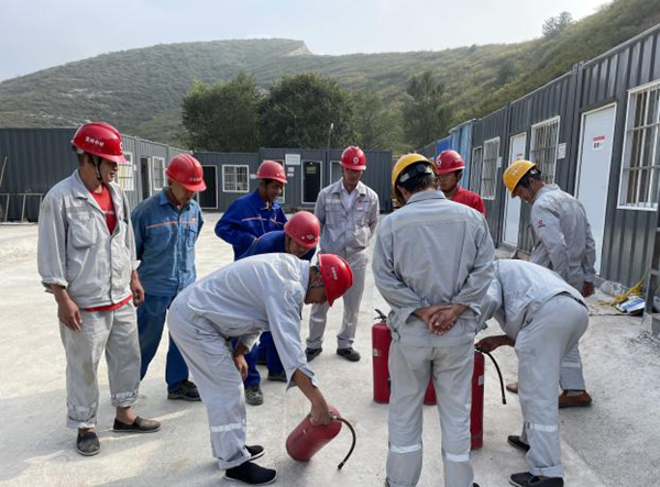 事故假定:生活區(qū)發(fā)現(xiàn)火苗,并組織全體成員如何正確使用滅火器