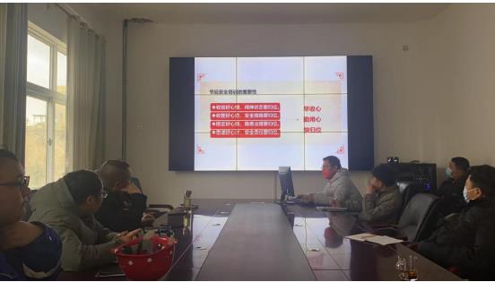 在礦山現(xiàn)場召開到崗一線員工“節(jié)后復工收心會”,趕走“節(jié)后綜合癥”,調(diào)整心態(tài),全身心回歸工作,增強節(jié)后安全意識。