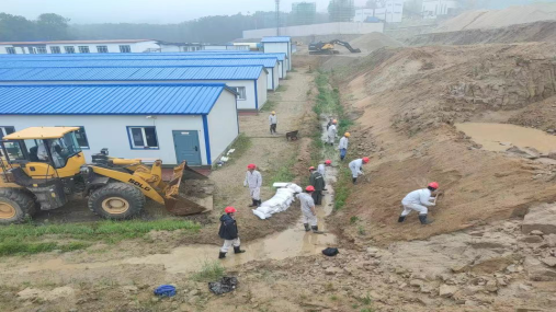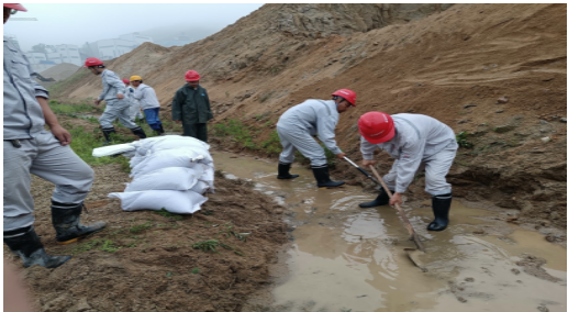 2022年6月20日早6點(diǎn),接應(yīng)急管理部門(mén)通知吉林地區(qū)預(yù)計(jì)未來(lái)24小時(shí)內(nèi)將有強(qiáng)降雨,舒蘭分公司項(xiàng)目經(jīng)理宋憲軍緊急通知各科室人員,組織對(duì)現(xiàn)場(chǎng)、生活區(qū)、炸藥庫(kù)、維修車(chē)間等地點(diǎn)進(jìn)行了防汛設(shè)施檢查。生活區(qū)東側(cè)邊坡被臨近公司時(shí)候后未進(jìn)行修整,加之連續(xù)降雨一整夜,東側(cè)邊坡垮塌,淹沒(méi)排水溝,造成堵塞。 接到通知后,生產(chǎn)科,立即調(diào)用裝載機(jī)趕到現(xiàn)場(chǎng),組織員工帶好防汛裝備趕到現(xiàn)場(chǎng)?,F(xiàn)場(chǎng)負(fù)責(zé)人周浩講“裝載機(jī)立即清理邊坡上的塌陷料,生產(chǎn)科組織人員去上游疏通水道,安全科和設(shè)備科組織人員去邊坡上面挖掘水溝設(shè)置擋墻,避免水流二次破壞邊坡”,任務(wù)分配完畢后,各科室?guī)ьI(lǐng)人員緊鑼密鼓的組織起來(lái)。