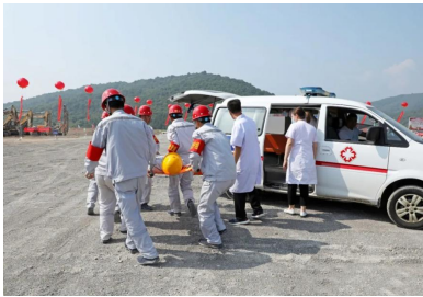 演練模擬在礦山現(xiàn)場1512平臺,由于雨后爆堆松軟,排險不及時,導致挖掘機進行挖裝作業(yè)時發(fā)生坍塌事故,土石坍塌砸到駕駛室,車門無法正常開啟,駕駛員被困駕駛室并且傷情不明,現(xiàn)場管理人員向應(yīng)急指揮部報告后,立即啟動應(yīng)急預(yù)案,組織人員開展傷員救助。 演練開始前兗州中材呂梁分公司項目經(jīng)理王建立發(fā)表講話,并介紹了項目情況。王經(jīng)理表示,呂梁分公司成立十年來一直秉承一個央企的責任,履行企業(yè)的安全管理職責,展現(xiàn)國有大型企業(yè)的擔當。安全工作從嚴要求,做好企業(yè)安全形象。提升服務(wù)高度、精度和寬度,為礦山行業(yè)的健康發(fā)展貢獻力量。