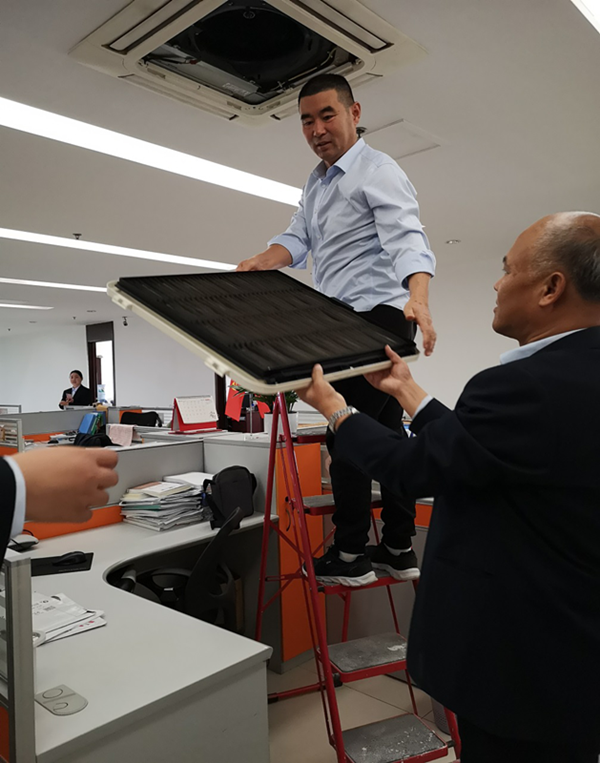 為扎實(shí)開展“不忘初心 牢記使命”主題教育,充分發(fā)揮黨先鋒模范作用,11月11日,濟(jì)南支部開展 “不忘初心 牢記使命”主題教育黨員志愿服務(wù)活動(dòng)。支部書記高金軒同志帶領(lǐng)黨員全面清洗辦公區(qū)空調(diào)過濾網(wǎng)。經(jīng)過一個(gè)夏天的使用,空調(diào)進(jìn)風(fēng)口格柵和過濾網(wǎng)已經(jīng)布滿灰塵,同志們不怕臟不怕累,挨個(gè)拆卸、清洗、擦拭、晾曬,將每個(gè)過濾網(wǎng)清洗的潔凈如新。