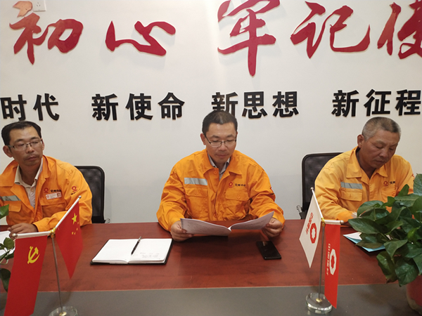 按上級(jí)黨委統(tǒng)一部署,寧陽項(xiàng)目部于9月23日晚召開全體員工結(jié)合中材礦山劉書記講話精神,開展“不忘初心,牢記使命”主題教育活動(dòng)。 會(huì)上,劉經(jīng)理首先帶領(lǐng)全體員工認(rèn)真學(xué)習(xí)《在中材礦山建設(shè)有限公司開展“不忘初心,牢記使命”主題教育部署會(huì)上的講話》。全體員工分別針對(duì)“不忘初心,牢記使命”主題教育活動(dòng)展開發(fā)言討論。最后,根據(jù)《在中材礦山建設(shè)有限公司開展“不忘初心,牢記使命”主題教育部署會(huì)上的講話》會(huì)議精神,劉經(jīng)理呼吁全體員工要積極努力地向黨靠攏,今后更加緊密團(tuán)結(jié)在以習(xí)近平同志為核心的黨中央周圍,高舉習(xí)近平新時(shí)代中國特色社會(huì)主義思想偉大旗幟,扎實(shí)做好“不忘初心,牢記使命”主題教育工作,為全面完成集團(tuán)和股份公司下達(dá)的各項(xiàng)經(jīng)濟(jì)指標(biāo)而努力奮斗,以優(yōu)異的成績迎接新中國成立70周年   |