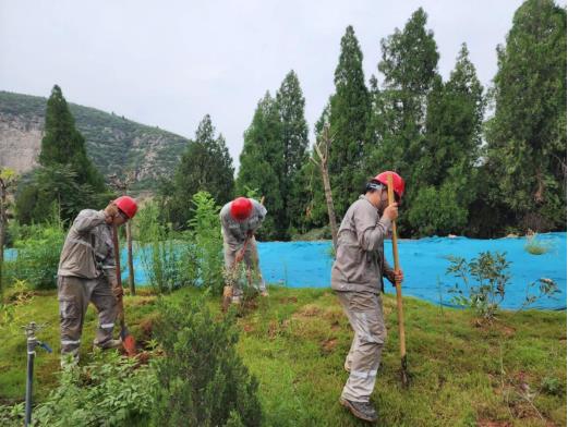 近年來,礦山變綠成為我國(guó)礦山發(fā)展的主旋律。河南片區(qū)黨支部以黨建為引領(lǐng),認(rèn)真踐行“綠水青山就是金山銀山”的生態(tài)理念,堅(jiān)定不移走“生態(tài)優(yōu)先、綠色低碳”的發(fā)展新路,以黨建統(tǒng)一思想、以黨建激發(fā)活力、以黨建凝聚人心,以紅色黨建助力綠色礦山建設(shè)抓手,將生態(tài)保護(hù)放在與生產(chǎn)、安全同等重要的位置。河南片區(qū)黨支部按照綠色發(fā)展理念,著力推動(dòng)綠色礦山建設(shè),經(jīng)過不懈的努力,僅白坪分公司礦區(qū)已累計(jì)種植樹苗幾千余棵。