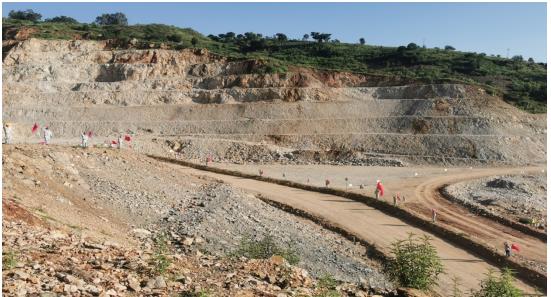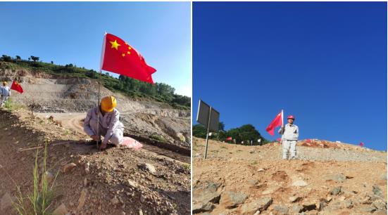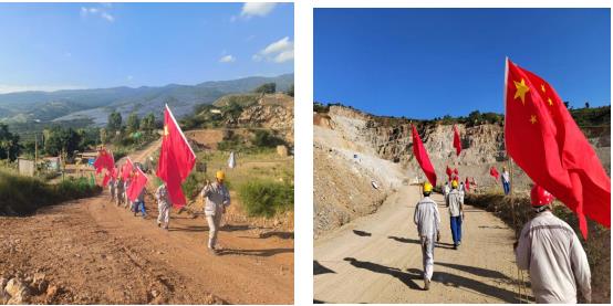 唱完國歌,員工們?cè)陧?xiàng)目經(jīng)理及各黨員的帶領(lǐng)下,每人領(lǐng)取了一面國旗和旗桿,興致勃勃的向礦區(qū)走去。