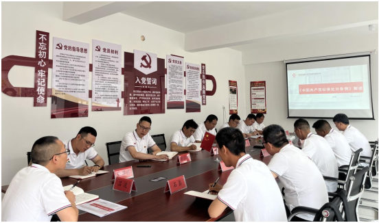 首先,西南片區(qū)黨支部召開支部黨員大會,集中學習《中國共產(chǎn)黨紀律處分條例(2024年)》新修訂版,就修訂的主要內(nèi)容和鮮明特征、對推動全面從嚴治黨的意義、抓好貫徹落實等方面做出詳細解讀,并強調(diào)在項目經(jīng)營中,對規(guī)章制度和廉潔紀律要嚴格遵守,著重提出對“高壓線”、“紅線”問題不可觸犯。